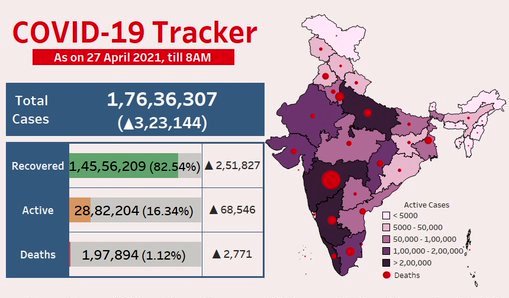 India today logged over 3.23 lakh new Covid cases, 8.4% less than yesterday. 2,771 deaths in the last 24 hours.