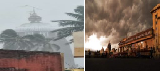 Puri: The bamboo of the Patita pabana flag atop Srimandira of Puri broke due to heavy wind and rain that occurred