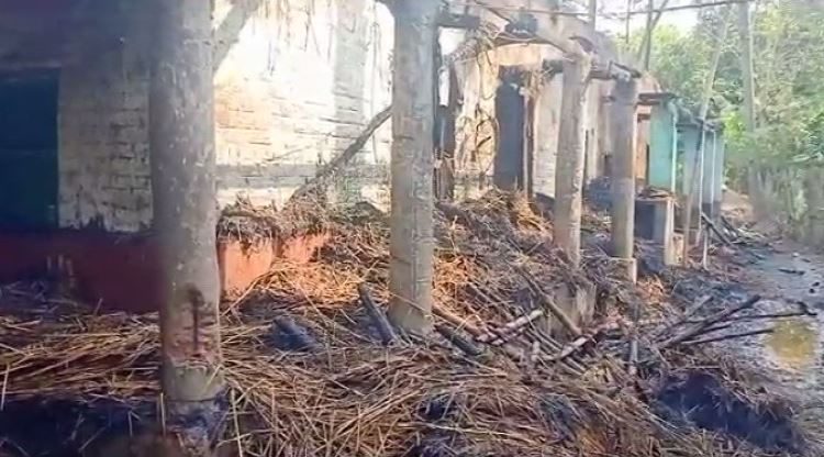 Bhadrak: Around 22 houses of 11 families were gutted in a fire triggered by lightning at Gop Sahi under Tihidi block